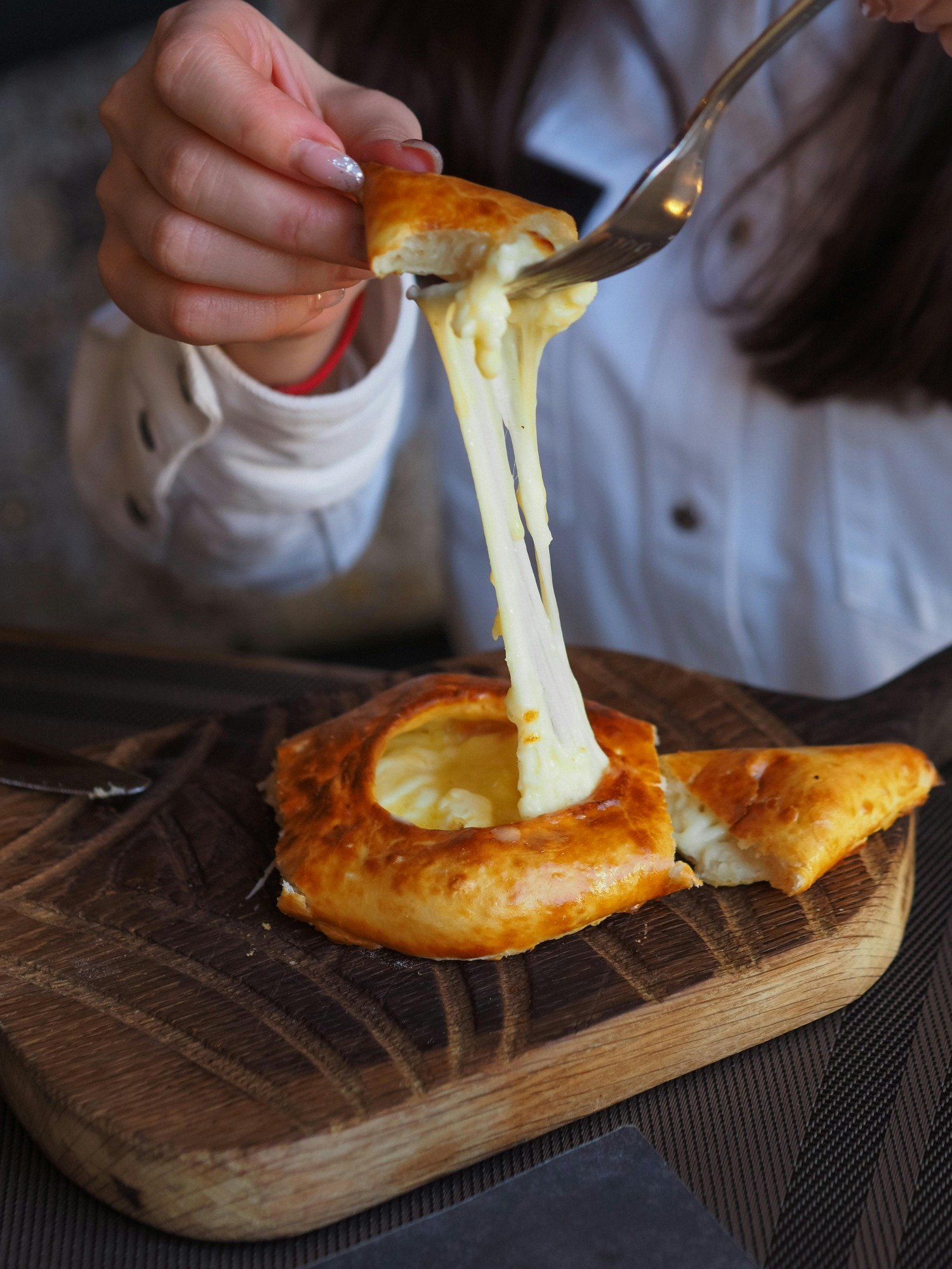 Menu oferuje szeroki wybór dań typowych dla kuchni gruzińskiej, w tym pyszne chaczapuri (gruzińskie placki z serem) w wielu odsłonach, czy pyszne croissanty.